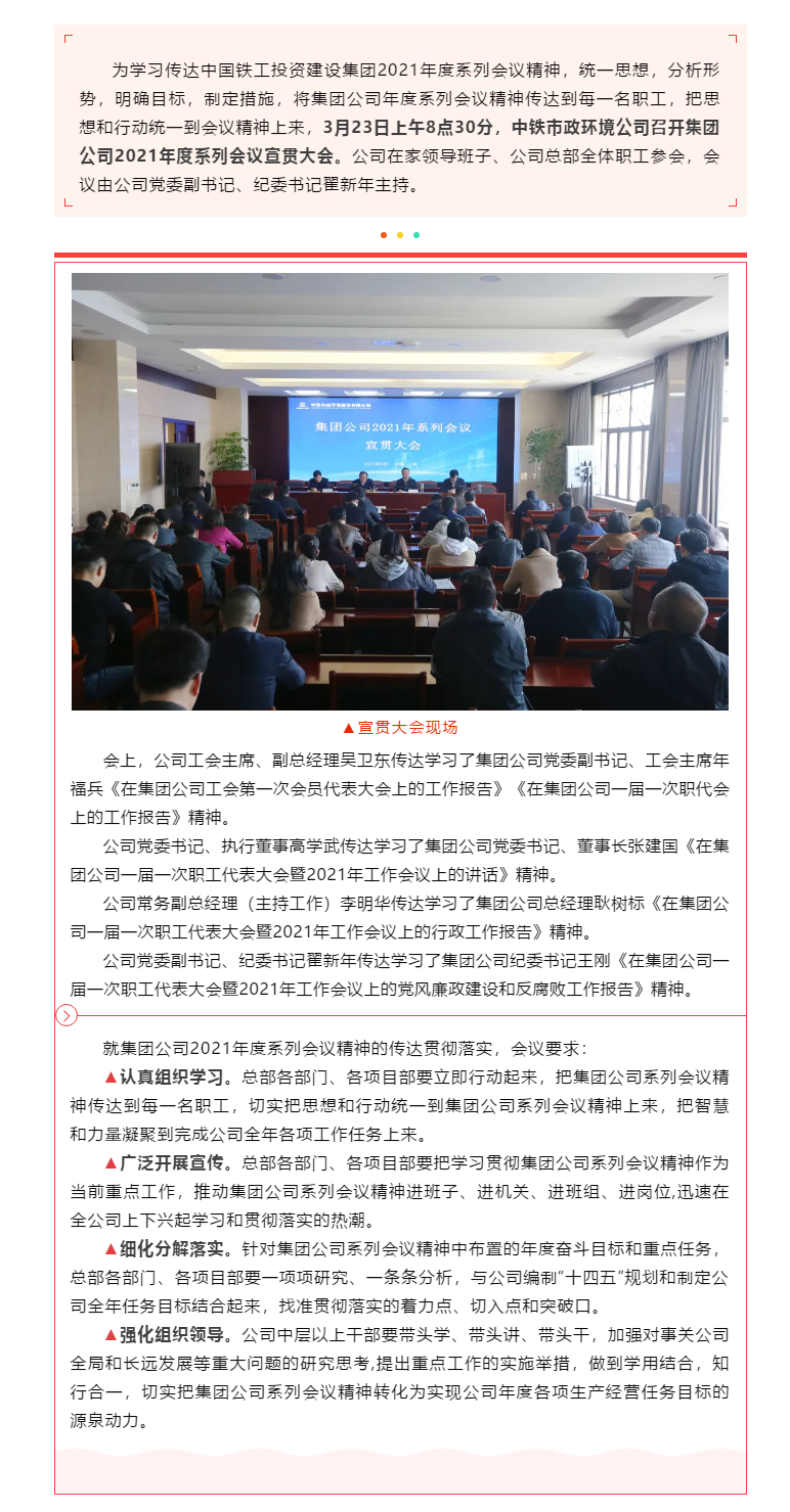 迅速行動(dòng)!中鐵市政環(huán)境公司學(xué)習(xí)傳達(dá)集團(tuán)公司2021年度系列會(huì)議精神