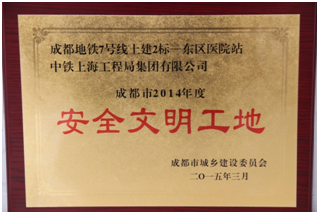 公司成都地鐵7號線2標東區醫院站 榮獲“2014年度成都市建設工程安全文明工地”
